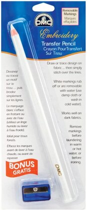 A white pencil that allows designs to be easily transferred onto dark-colored fabrics.This pencil is ideal for stitching over the traced lines. The white pencil markings are removable by using a damp cloth or cold water.