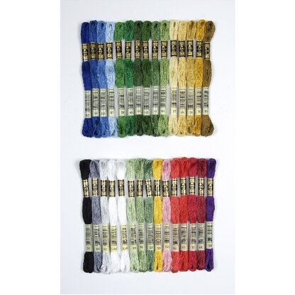 30 skeins of the bestselling Holiday thread colors. The palette includes shades of red. Green, gold, and blue