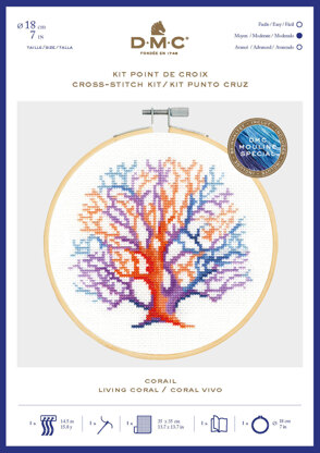 DMC Living Coral Cross Stitch Kit - 7in (with 7in hoop)