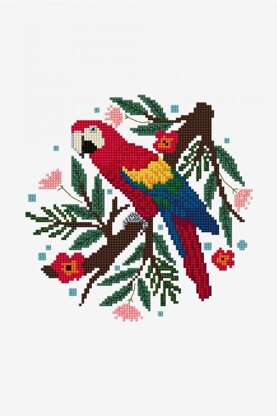 This free downloadable cross stitch pattern is the perfect way to brighten up your day. Take a trip to the tropics with this vibrant macaw, featuring distinctive rainbow feathers and luscious rainforest surroundings. Stitch it onto tote bags, denim jackets, or frame it as a decoration for your space!
