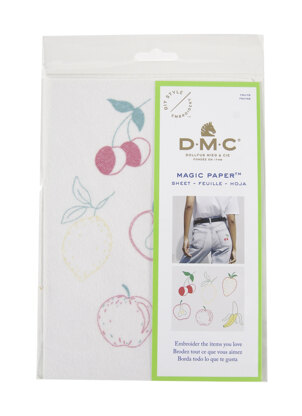 Embroider the items you love with DMC. This fun fruit pattern can be embroidered on anything and everything - from a hooped wall hanging, a plain tote bag, a cushion cover, or a basic tee to name a few. \n\nIt's never been so easy to embroider it yourself - all you've got to do is cut out the fruit pattern, stick it to the fabric of your choice, and start stitching! \n\nWhen your DIY is done, rinse it all off - the magic paper will dissolve in a few seconds, and you'll be left with your wonderful embroidery piece.\n1 sheet of magic paper printed in 3 colors (A3 format)