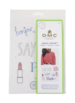 Embroider the items you love with DMC. This charming French pattern can be embroidered on anything and everything - from a hooped wall hanging, a plain tote bag, a cushion cover, or a basic tee to name a few. \n\nIt's never been so easy to embroider it yourself - all you've got to do is cut out the french pattern, stick it to the fabric of your choice, and start stitching! \n\nWhen your DIY is done, rinse it all off - the magic paper will dissolve in a few seconds, and you'll be left with your wonderful embroidery piece.\n1 sheet of magic paper printed in 3 colors (A3 format)