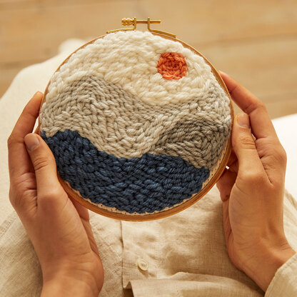 Relax, unwind and calm your mind with a Simple Punch Needle Kit designed to introduce you to a whole world of mindful making. The finest materials from DMC create the most enjoyable making process and ensure a beautiful project. Everything you need for hours of mindfulness is in the box: 100% acrylic yarn (31m), punch needle tool, 6ct aida punch needle fabric (26cm x 26cm), backing fabric (26cm x 26cm), a wooden hoop (15.7cm diameter) which doubles as a frame for your punch needle creation, and simple instructions.