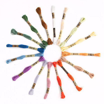 For serene stitching landscapes and projects packed with colour, this thread pack is filled with a classic collection of DMC Stranded Cotton. Bright reds, a number of greens, purples and more! Includes shades: 825. 813, 869, 3864, 606, 712, 367, 772, 977, 720, 3727, 553, Blanc, 3078, 3747, 502