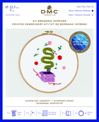 DMC Surprise! Snake (printed fabric, 5" hoop) Embroidery Kit - 25cm x 25cm