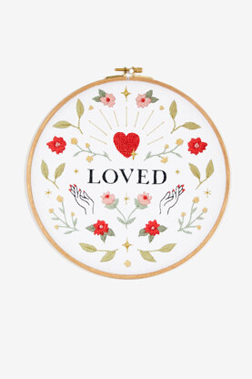 For World Mental Health Day we’ve collaborated with embroidery artist and designer Emily June to bring you a series of uplifting mantras you can stitch as part of your own self-care or to encourage loved ones. The design features the words Loved surrounded by red flowers and natural elements. Our clear patterns and quality supplies make it easy for you to complete your project. Colourfast and fade resistant DMC threads keep stitches looking vibrant for generations to come.