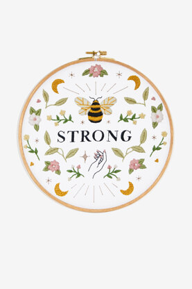 For World Mental Health Day we’ve collaborated with embroidery artist and designer Emily June to bring you a series of uplifting mantras you can stitch as part of your own self-care or to encourage loved ones. The design features the words Strong surrounded by flowers and a bee. Bees symbolise hard work and are a reminder to be resilient in order to achieve your goals. Our clear patterns and quality supplies make it easy for you to complete your project. Colourfast and fade resistant DMC threads keep stitches looking vibrant for generations to come.