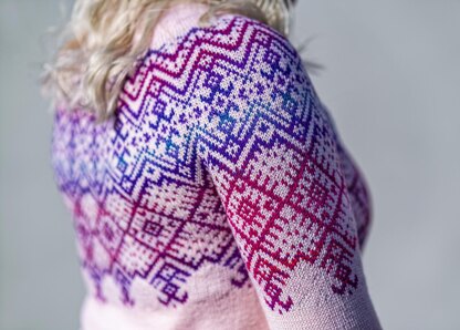 Gauge: 28 sts & 34 rows = 10 cm / 4” in Stockinette stitch and colourwork in the round, blocked.