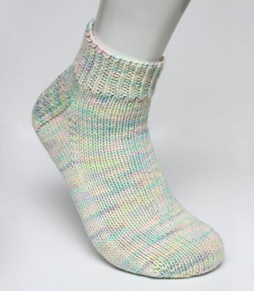 This is a toe up sock pattern, worked in one piece, from the toe up to the cuff. Casting on requires using a two needle cast on method. The toe of the socks is knitted first, before moving onto the foot, the gusset, the heel, then the leg and finally finishing on the cuff. A stretchy cast off is used to cast off the stitches of the cuff. Instructions for this sock are in written format only.