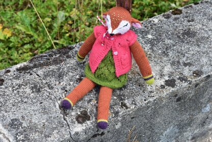 The Doe is a doll about 35 cm and dressed with nice clothes. This pattern is all written instructions to knit this Doe doll and a dress and cardigan to go with.