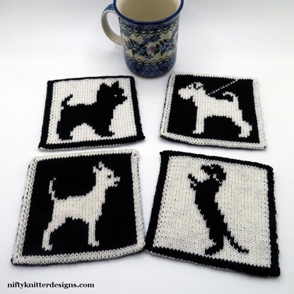 Decorate your kitchen with this cute set of four dog coasters! Perfect for a knitter or anyone loves dogs. They make great quick gifts!