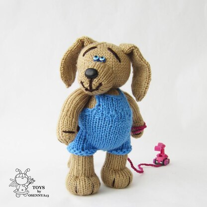 Materials needed • 4 double-pointed needles in a size suitable for the yarn weight you are using. I recommend using needles a size or two smaller than the yarn calls for, to produce a firm fabric. İ used Needles size 4 (3.5mm) for dog, 6 (4 mm) for panties • Beige yarn for dogs • Blue yarn for a panties • Toy stuffing • Plastic eyes and nose • Yarn needle • Stitch holder • Dark brown yarn for eyebrow and claws • 2 buttons for panties