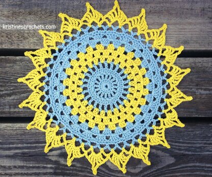 The doily placemat you can make by following this pattern will be approximately 30cm (11.8 inches) in diameter.