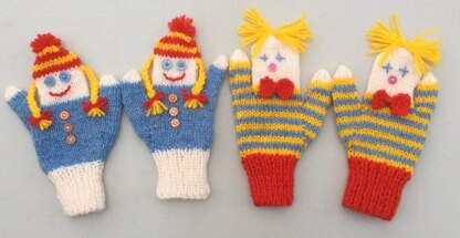 This pattern gives instructions for two different designs of fun puppet mittens for children - Doll and Clown. Each design is available in three sizes, to fit children from 2 to 7 years old.