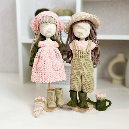 SKILL LEVEL This project is suitable for the advanced beginner or intermediate crocheter. YOU WILL NEED: Cotton yarn, crochet hooks, sew-on snaps, needles, stuffing and basic supplies like scissors. Get your hooks ready and add this adorable crochet doll outfit pattern to your cart right now! I'm sure that making these clothes will bring you lots of joy. * Cute crochet doll outfit tutorial for dress, bolero, lacy bandana, high boots, overall, t-shirt, sun hat, watering can, tulip bouquet and hair wig. * PDF Format * Tutorial includes step-by-step instructions with 64 photos! * Tutorial uses US English terminology * Size: the finished size will depend on your tension and the materials used.