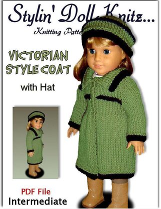 Knitting pattern that fits American Girl and 18 inch dolls. Victorian Coat and Hat.