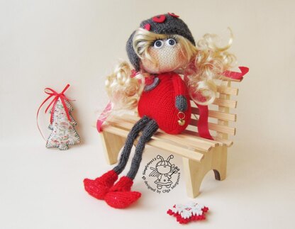 Materials needed • 4 double-pointed needles in a size suitable for the yarn weight you are using. I recommend using needles a size or two smaller than the yarn calls for, to produce a firm fabric. İ used Needles size 2,5 (3mm). size 4 (3,5mm).. • Cream acrylic yarn (Kartopu «Flora» 100% acrylic 100 g-230 m) for head • Rad and gray yarn (Kartopu «Flora» 100% acrylic 100 g-230 m) for body-heart, hands, shoes • Ready doll wig or Yellow colored yarn (Kartopu «Flora» 100% acrylic 100 g-230 m) for hair • Toy stuffing • Plastic eyes , eyelashes • Yarn needle • Stitch holder • Two segments ribbon 50 cm • Heart Felt • 3 Hearts