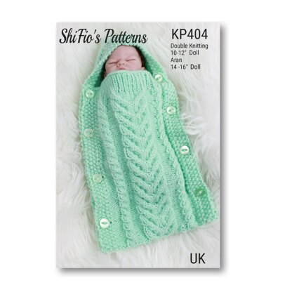 Imagine crafting this adorable hooded sleeping bag for dolls, using double knitting or light worsted #3 yarn, or even aran/worsted #4 yarn. It makes for a delightful surprise for anyone who cherishes their doll. Plus, the joy of creating it in their favorite shades is an added bonus. The pattern comes in two sizes, fitting a 10"-12" or a 14"-16" doll, allowing you to tailor it perfectly for your doll's size.