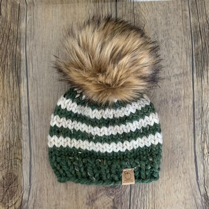 The Dominion Beanie is the perfect hat for beginners who would like to begin working with more than one colour.