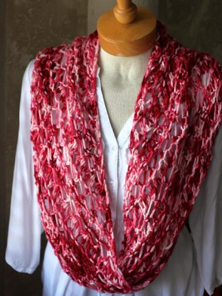 Donny can do anything! With just one skein of bulky yarn, you have a cozy, close-fitting cowl. With two skeins ... well, you have yourself a deliciously squishy scarf, a stole, or a cowl with different finishing choices. And, it’s reversible, because, like I said, Donny can do anything!