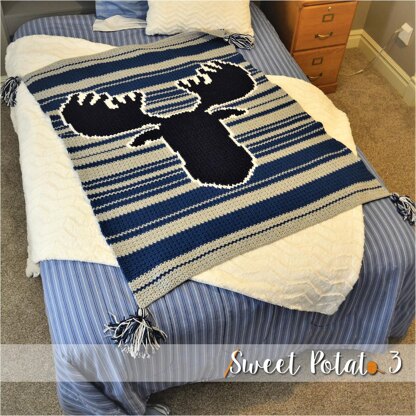 The Don't Moose with Me Crochet Blanket Pattern is a fun oversized throw blanket. The silhouette of the moose is defined with an outline that makes it pop. The design is only emphasized with the stripes in the background.