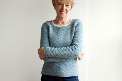 Introducing Don't Worry Ma, a cozy pullover with a funny name. Textured in Diamond Brocade stitch throughout (a meditative 8 stitch by 8 row repeat) with garter stitch trimming, bodice and sleeves are worked top down and-in-the-round. Short rows smooth sleeve cap edges that are set in. Worked in Aran weight yarn, it's a quick knit with stylish results. Enjoy!