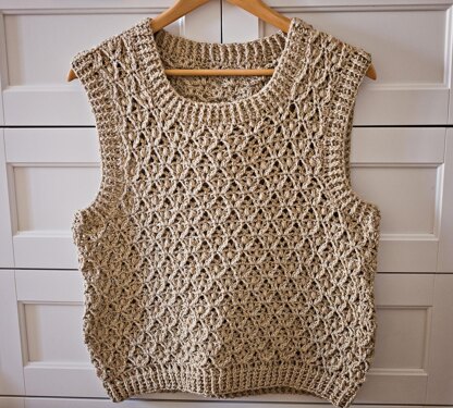 You can make it with warm wintery yarns, like alpaca or wool, to wear as an additional layer in colder months, or you can make it with light summery yarns to wear as a summer top.
