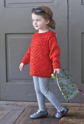 Dot knots kid is a basic crew neck pullover, with “dots" creating a playful texture on an otherwise plain stockinette stitch fabric. The dot knots are made by first creating loops and then passing the loops over worked stitches. The pattern is fun to learn, interesting to work and easier that traditional bobbles.