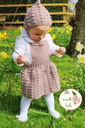 Pattern Description The Dottie Bonnet is so much fun to make and so easy too. Made from a single rectangle shape using single crochet and puff stitches, it is a wonderful beginner project. When the rectangle is complete, the bonnet is folded in half and a seam is made down the back of the bonnet. Next, the bottom and front edging is stitched and lastly the straps. Simple! The Dottie Bonnet looks amazing with the Dottie Dress which is pictured in the photos. Happy puff stitching!