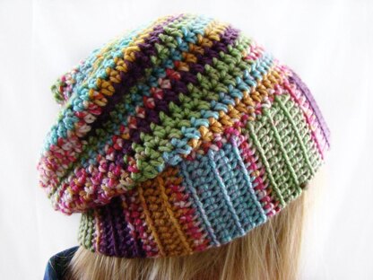 Crochet Slouchy Hat with Double Folded Brim for added warmth.