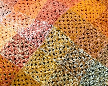 Because it is made with two strands held together it is best to choose lightweight yarns. You can change the size of the squares to suit your chosen yarn. The size of hook you need will depend on the yarns you choose.
