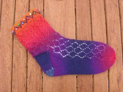 A most alluring pair of bead-topped socks with a choice of two different diamond patterns. The Diamond Lace gives a traditional lacy effect, whilst the Waffle pattern gives a denser, more textured look.