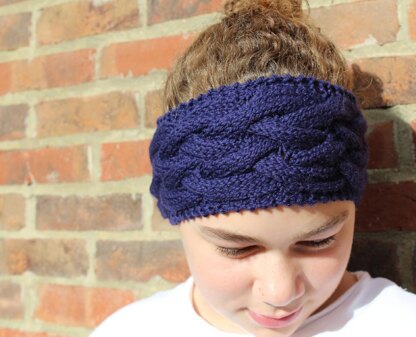 This headband is very eye catching with a split cable pattern using both knit and purl stitches. It is knitted fat and seamed at the end with some shaping at each end. It matches the Double Dutch Cabled Cowl.
