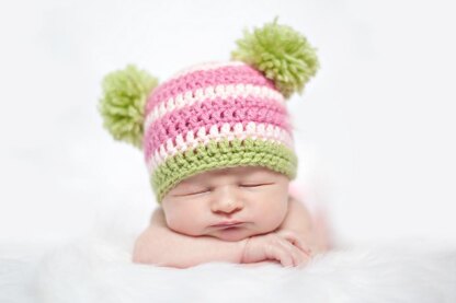 Take an ordinary beanie hat and make it super cute and edgy with stripes and two pom poms. A must have pattern that's easy to make and follow.