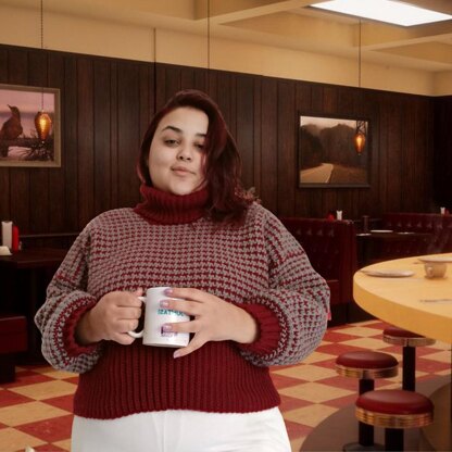 The Double R Pullover is a made-to-measure Twin Peaks inspired sweater that has a retro vibe. The sweater has a cropped fit and set in sleeves.