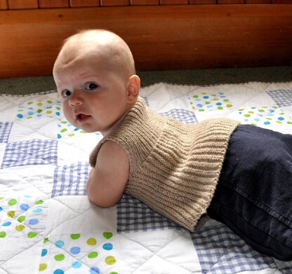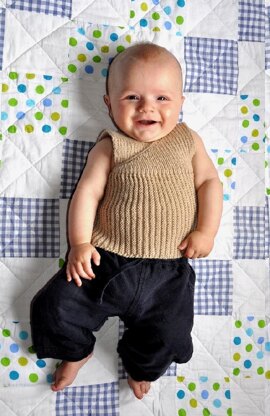 Doublet is a stretchy singlet designed to keep little chests warm. There is a double layer over the chest, and a crossover neckline that stretches to accomodate big heads while still providing warmth.
