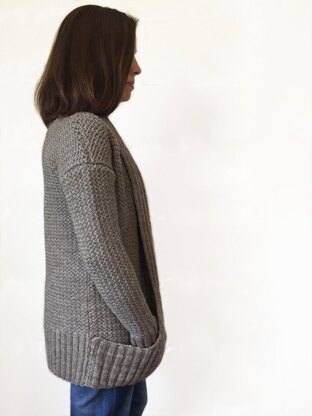 Down Home is knit flat and seamed for stability. The fronts are knit in one piece. You’ll cast on for the left front and work from the bottom up through the shoulder shaping and across the neck before working the right front from the top down.