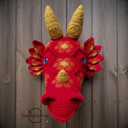 Draco the African Flower Crochet Dragon Head, Faux Taxidermy wall decor.