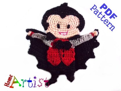 The pattern provides instructions to make a cute crochet applique that can be used in inumerable ways...decorate and personalize your favorite objects like hats, t-shirts, bags, school knap-sacks and lots of other stuff you can think of. Dracula: 5 inches across by 5 inches tall but the size can be varied by using thinner or thicker yarn and types of hook. Colors can be changed according to your personal preference. The pattern is designed for worsted weight yarn and uses American English crochet terms. This crochet pattern is available for Instant Download. Once your payment is received, you will get an email with the download link and details of your order. In case of problems feel free to contact me anytime.