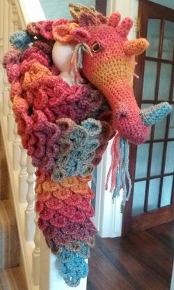 After hunting for a Dragon Scarf pattern, but not finding one that fitted with the idea I had in my head, I decided to make my own. Eventually this fiery chap emerged from my ball of wool.