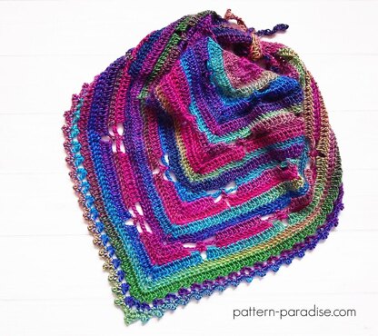 One skein of this beautiful Stained Glass Boutique Unforgettable yarn was just enough to complete the bandana cowl pictured, but the pattern can easily be adapted into a full-sized shawl. (Instructions are included to do so.) I estimate 3 - 4 skeins will be needed for a shawl.