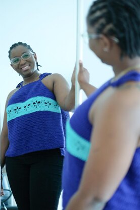 The Dragonfly Tee is an advanced beginner friendly swing type top that is flirty, light, and playful. Unique shaping, unexpected details, and a feminine silhouette are just a few elements that bring this cotton halter to life.