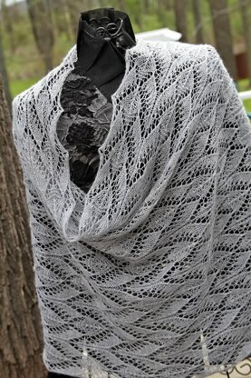 Do you see the little dragons? The wings? The pointy heads? Wrap yourself in gentle lace shawl and feel warm in any time and circumstances: in a cool summer evenings, in an air conditioned office or evening theater's performance... You would not make too far without being complemented on your shawl. Made out of Mrs Crosby Riticule lace yarn. It could be substitute by any of your favorites.The size could be optional too - shorter or longer, wider or narrower, depends on the pattern's repeats. The pattern offers written and charted instructions.