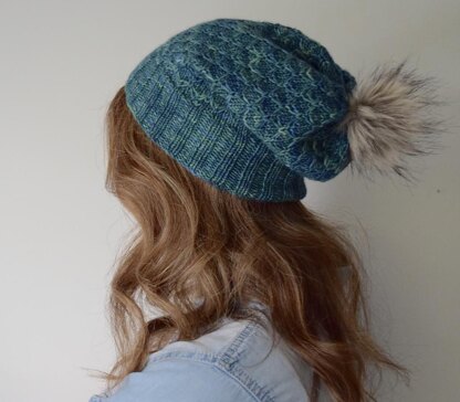 Dream Catcher features a honeycomb pattern that is deceivingly simple and the effect is amazing. This is the time to use those beautiful variegated yarns! The hat is knit from the bottom up, in one piece.