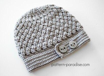 I love the woven look of this hat and how it terminates into a textured band. The crown radiates from the center into the woven section, unlike many hats that simply start in half double crochet. This is such a flattering hat and perfect to keep your head warm on cooler days.