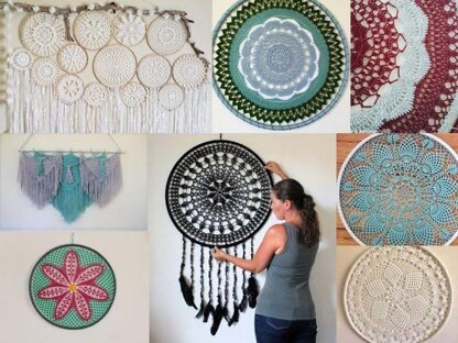 Introduction Chapter 1 Diamond Mandala Chapter 2 Cockle shell Mandala Chapter 3 Granny pineapple Mandala Chapter 4 Hanging Mandala Chapter 5 Pineapple Mandala Chapter 6 Granny’s garden Chapter 7 Corner2Corner ma-cro-me Chapter 8 Petals Chapter 9 Granny stitch ma-cro-me Chapter 10 Multi Hoop dream catcher patterns #1 through to #15 Chapter 11 How to block Chapter 12 Long tail chain cord Chapter 13 Stitch directory