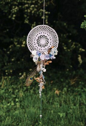 Materials 100m Approx for the main body 20m Approx for each contrast colour 2.5mm hook Selection of feathers and beads Circular wire craft frame - 25cm Glue gun