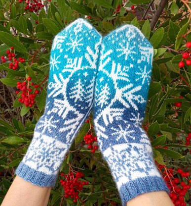 2. Options: There are 2 options to choose from: (1) Trees and (2) Snowflake. There is also an option to choose how you want the image to present itself: (1) the wearer sees the full image; (2) the image is put together when the mittens are presented to others. More notes on that in the instructions and charts.