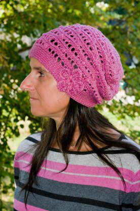 Beautiful and playful slouchy or beanie hat for springtime. Wavy eyelet pattern makes this hat light and still warm enough for colder days. I made this pattern at the end of the winter when my heart was longing for warmer weather.