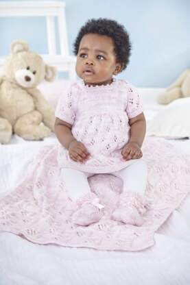 Dress, Cardigan, Blanket and Bootees in King Cole Little Treasures DK - 5856 - Downloadable PDF